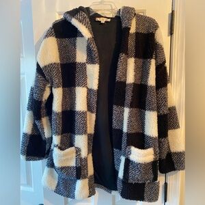 Hippie Rose Black and White Buffalo Check Hooded Sherpa Shacket Size L