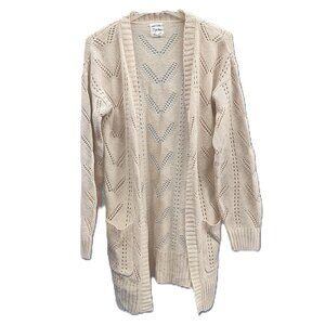 Hippie Rose Cream/Tan/Beige Long Cardigan Sweater Pattern Pockets Size Small