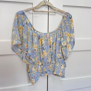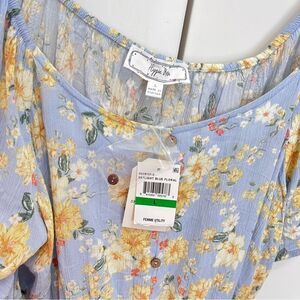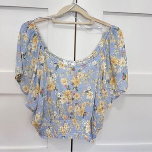 Hippie Rose Floral Crop Top Boho Size Large NWT crinkle buttons blue yellow
