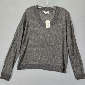 Hippie Rose Gray Sweater NEW Stretch Long Sleeves V-Neck Scoop Neck Women Size M
