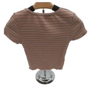 Hippie Rose Juniors Ribbed Henley Top Short sleeve Button Brown V Neck Sz XS New