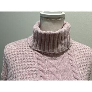 Hippie Rose Juniors Turtleneck Cable-Knit Sweater Lilac Blush Size Small New B57