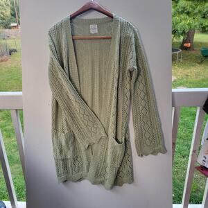 Hippie Rose Lacey Green Open Front SZ Med Sweater Cardigan