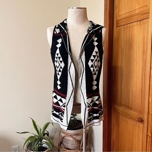 Hippie Rose Medium Sleeveless Cardigan Hood Aztec Southwestern Layering Casual