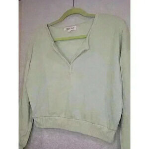 Hippie Rose Mint Green Cropped Super Soft Pullover Sweater Large V Neck