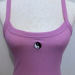 NWT. Mauve Tank Top for Juniors Various Sizes. Sleeveless, ribbed knit construction, patch "ying yang" design front, V-back, cropped. Necklace is not included. Pictures are part of description.