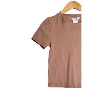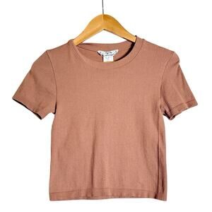 Hippie Rose Ribbed Cropped Tee Shirt Womens L Dusty Rose Stretch Short Sleeve
