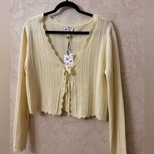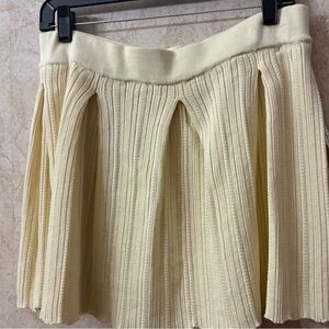 Stylish cream ribbed knit cardigan and skirt set.