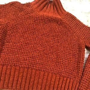 • long sleeve rusty red autumn colored waffle knit crop sweater