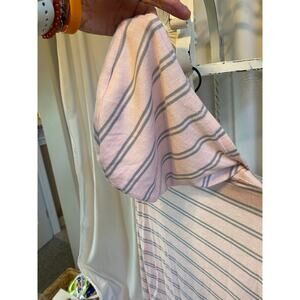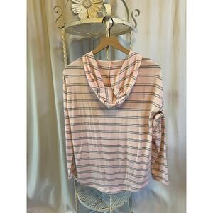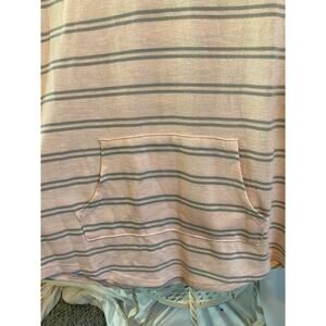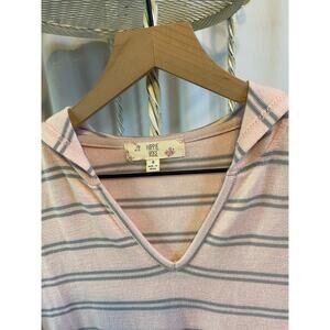 Hippie Rose Sweater Pullover Hoodie V-Neck Pink and Grey Stripe Size Small