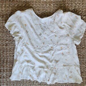 Hippie Rose White and Yellow Floral Blouse Peplum V-Neck