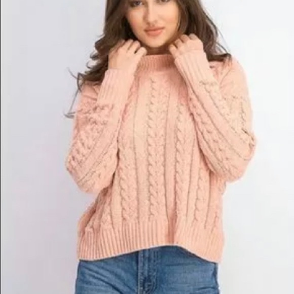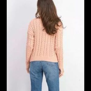 Very nice and comfortable Hippie Rose Women’s Cable-Knit Drop-Shoulder Sweater, Pink, Size Small.