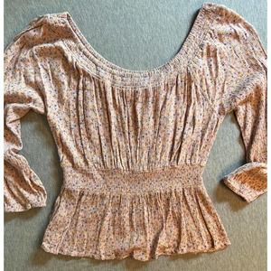 Hippie Rose Womens Casual Top Multicolor Floral Long Sleeve Smocked Boho XL