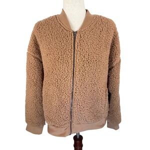 Hippie Rose Womens L Cozy Bomber Jacket Western Tan Sherpa Zip Up
