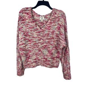 Hippie Rose Women's Pink V-neck Loose Knit Sweater Size XSmall