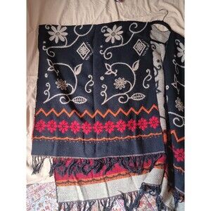 Hippie boho oversize embroidery poncho wrap one size black floral design