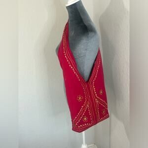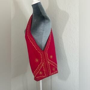 Hippie- boho- unbranded Ed pink embroidery crossbody tote bag- boho 70s