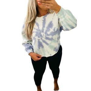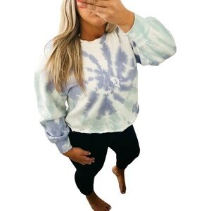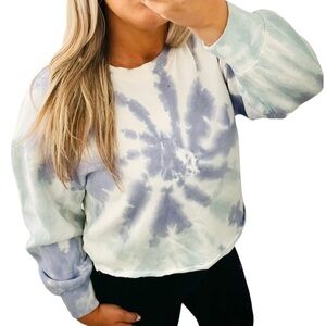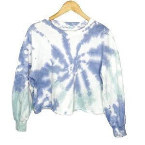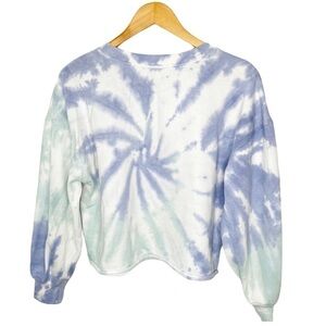 Hippie rose lounge tie dye fleece blue & white cropped sweatshirt
