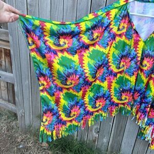 Hippie tie dyed shawl ties at neck fringe one size fits most