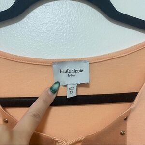 Hippie Haute Top Women Orange Embroidered Tassel Boho Plus 2X tunic