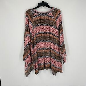 Hippie Love Women’s Floral Print Elastic Neck Cape Blouse size M