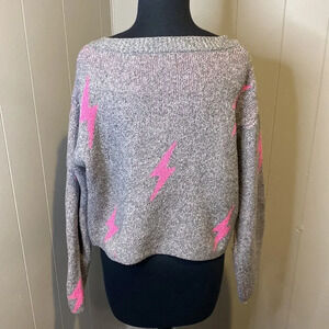 Hippie Rose Women’s Large Knit V Neck Sweater Lightning Bolt Cropped