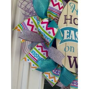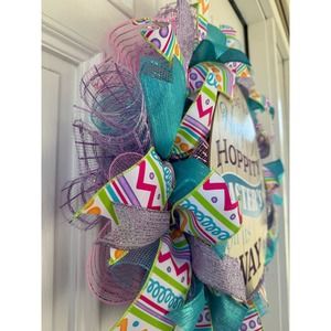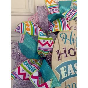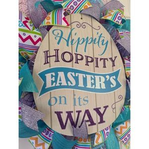 Hippity Hoppity Easter Egg Mesh Ribbon Spring Wreath Door Hanger xxx