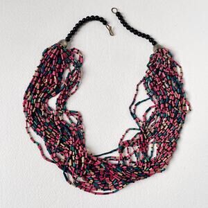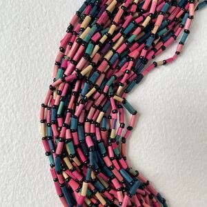 Hippy Boho Vintage Multi Strand Bamboo Bugle Bead Ethnic Statement Necklace Wood
