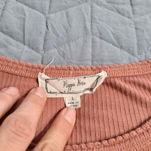Long sleeve Hippie Rose dusty rose colored ribbed t-shirt with lettuce trim. Size Large.