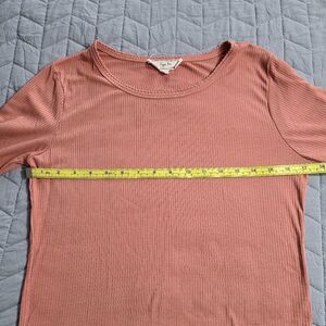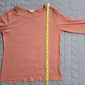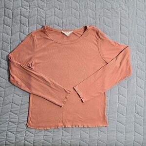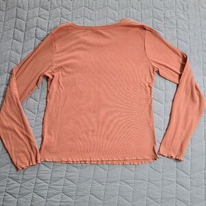 Long sleeve Hippie Rose dusty rose colored ribbed t-shirt with lettuce trim. Size Large.