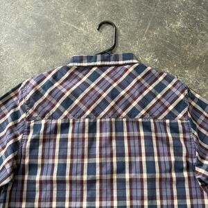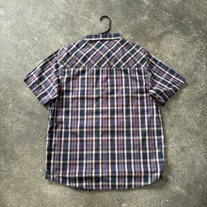 This men's size M button-up features a cool blue plaid pattern and short sleeves, perfect for any adventure. Whether you're hitting the trails or just hanging out, this shirt is sure to keep you comfortable and stylish.