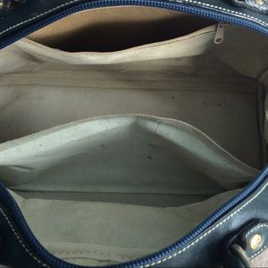 Hirofu Japan Bowler bag-- measures 15 inches across, 11 inches tall, and 6 inches wide. 4 inch handle drop. Suede interior with some markings (bag is a hand-me-down). Comes with dust bag and has been regularly treated with leather care lotion and stored faithfully in the dust bag. Incredibly roomy (you can fit makeup bags, a planner, wallet, keys, a book, phone, camera, small pony...) all inside.