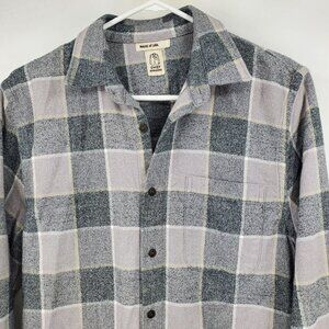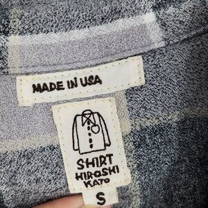 Hiroshi Kato Grey Plaid Men's Button Down Collared Flannel Shirt Size Small