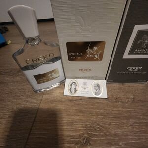 Experience the luxurious scent of Creed Aventus Eau de Parfum. This exquisite fragrance for women combines elegance with a touch of sophistication. The gold and white design reflects its premium quality.