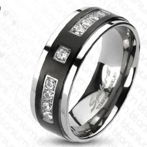 MEN'S RING: Two-Tone Black IP Solid Titanium Center Cubic Zirconia Wedding Band