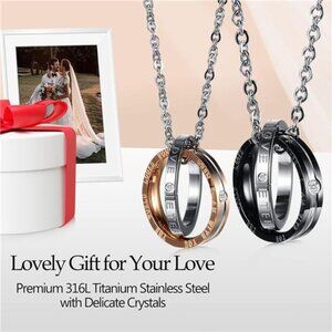 *TITANIUM STEEL CRAFTSMANSHIP: Expertly crafted with laser cutting, lead and nickel-free, and 100% hypoallergenic. These his hers matching necklace set won't cause any skin allergies or irritations.