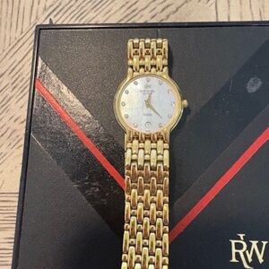 18 Karat plated Raymon Weil Swiss watches. One for men and one for ladies. Model number on ladies is 4702. Model number on mens is 4802.