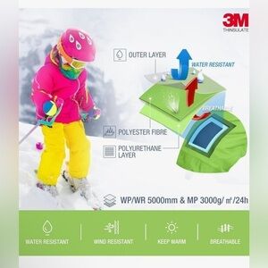 Lightweight & Insulating Material: Keep warm and not bulky! Water resistant polyester shell and warm 100g 3M Thinsulate Ultra Insulation, with a comfort level of 14°F/-10°C to 86°F/30°C. No matter what the weather, your children will want to stay on the mountain.