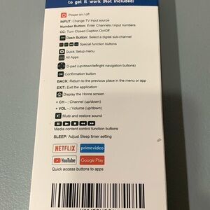 Hisense remote control packaging. Features app buttons for Netflix, Prime Video, and Google Play.