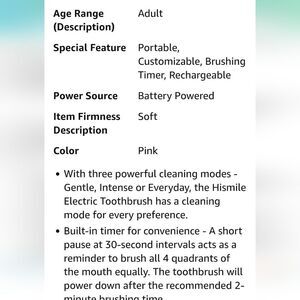 Hismile electric toothbrush in a vibrant pink color. Sleek and modern design.