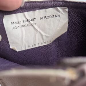 Made in Spain. Genuine leather uppers and super soft purple leather linings. 2" heels with rubber textured soles. Inside zip. 14" high boot shaft, 6.75" flat across the top boot opening. Size 37 EU in this brand is equivalent to a 6 US.