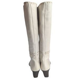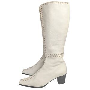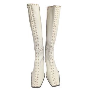 Hispanitas Cream Bone Leather Embroidered Square Toe Knee-High Boots 37 EU 6 US