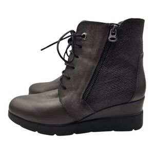 Hispanitas Lydia Boots Womens Size 38 EU 7.5 USGray Taupe Leather Wedge Booties