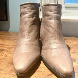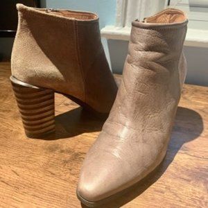 Taupe Collar Ankle boots, leather and suede combo , 3 1/2 in heel, size 38 or W 7.5.