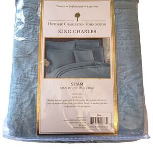 Historic Charleston Foundation King Charles Shams Set Of 2 NEW Blue Textured. Condition is new in package and never removed. Textured coastal blue thick cotton. King shams... Measures 20" x 36" each. You get both shams. Please see all photos for detailed condition.