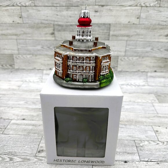 The Historic Longwood Mansion c.1861 Limited Edition Christmas Ornament from Natchez, MS is a beautifully crafted decoration perfect for the holiday season. Made of blown glass in a multicolor design, this ornament features a unique mansion shape that adds a touch of elegance to any Christmas tree. This limited edition piece captures the charm and history of the Longwood Mansion, making it a special addition to holiday décor.