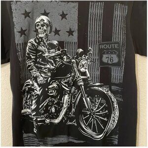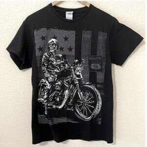 Historic Route 66 Skeleton Biker Skull Motorcycle American Flag Shirt Men Medium