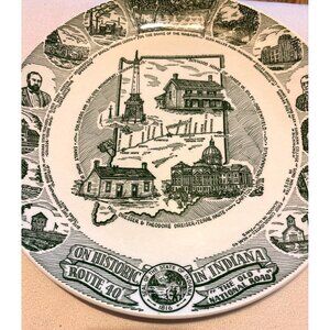 Historic Rte 40 Indiana Commemorative Plate Kettlesprings Kilns 10" Ceramic Vtg