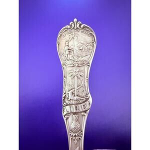 Historical SOUVENIR SPOON Jacksonville Florida STERLING SILVER Alligator Palm. Shipped with USPS Ground Advantage.