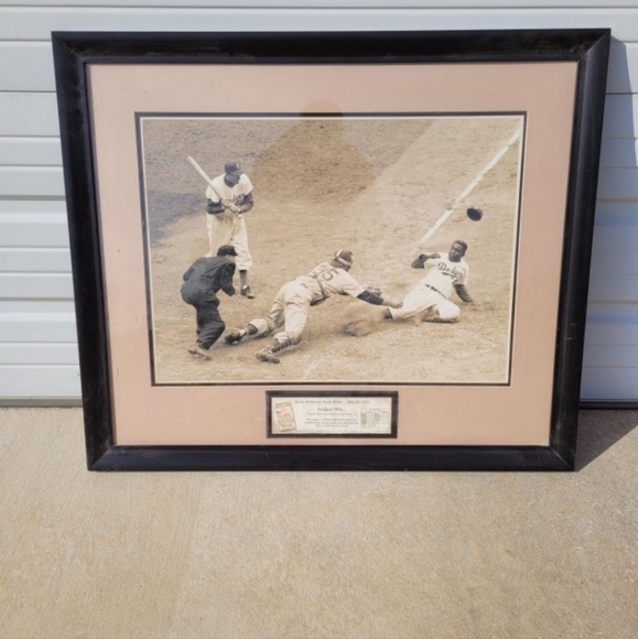 Replica of Jackie Robinson stealing a base large framed artwork